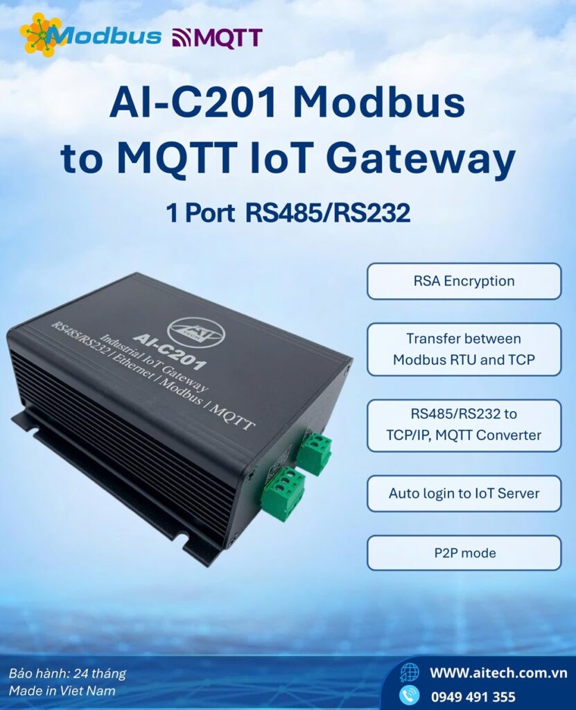 AI-C201 : Bộ Chuyển Đổi RS232/RS485 sang Ethernet, Modbus Gateway – 1 Port
